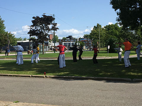 Cours de karaté à l'extérieur